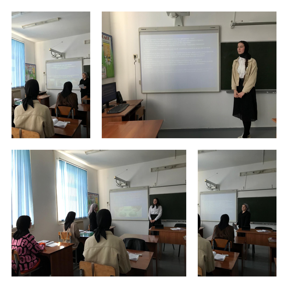 7.03.2024 г. в МБОУ «СОШ им Б.Н. Жабраилова с. Шовхал-Берды», классный руководитель Саидова Р.М. провела внеклассное занятие с обучающимися 10 класса.Тема занятия: «Вместе против терроризма и экстремизма».Цель – объяснить сущность экстремизма и терроризма, их типы и цели; формировать общественное сознание и гражданскую позицию подрастающего поколения.edited 14:46