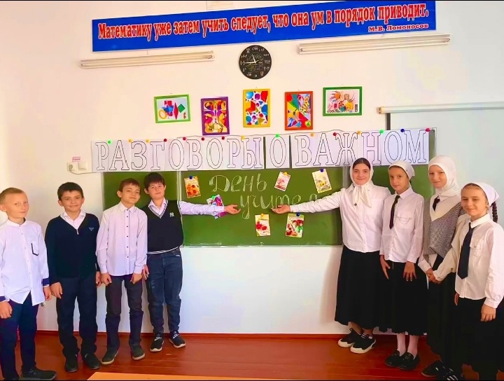 01.10.2024Внеурочное занятие из цикла «Разговоры о важном».Тема разговора - «День Учителя». Классный руководитель 5а класса Ханбиева Раяна Шамильевна рассказала об уникальности профессии учителя. Был организован просмотр вдохновляющего видео, которое дало возможность учащимся задуматься, каким был бы наш мир, если бы учителей не существовало. Также вспомнили, что у каждого человека, даже у самых известных личностей, были свои любимые учителя и наставники. В ходе обсуждения профессии учителя пришли к выводу, что искусственный интеллект, каким бы развитым он ни был, никогда не сможет заменить настоящего учителя. Ведь именно учитель способен вдохновлять, поддерживать, мотивировать и открывать новые горизонты для своих учеников.Учителя – это не просто профессия, это настоящее призвание и искусство, которое заслуживает особого почетного места в нашем обществе.
